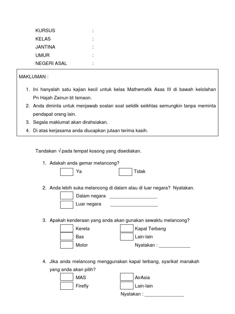 Contoh Borang Kaji Selidik Survey